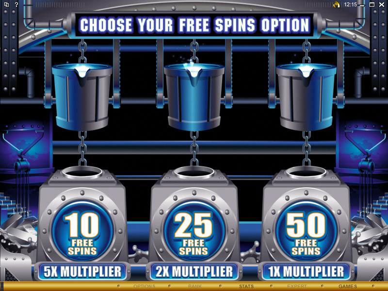 The first choice is a very generous round with 50 spins for free and a 1x multiplier. The second choice doubles the multiplier to 2x, but cuts in half the number of spins, to 25. The third option gives you a big multiplier, at 5x, but there are only 10 free spins.