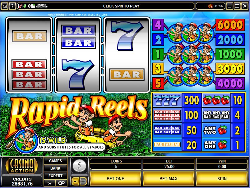 Rapid Reels has 3 reels and 5 paylines, which makes it a rather normal classic slot. A wild symbol is its only feature, while its top payout is worth $30,000.
