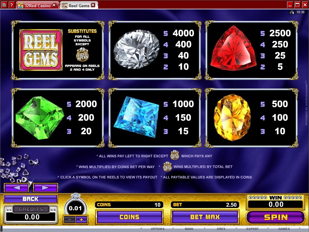 The Reel Gems slot machine is offered through the Microgaming platform, so if you want to play it for real or just to practice, look out for casinos that use it.