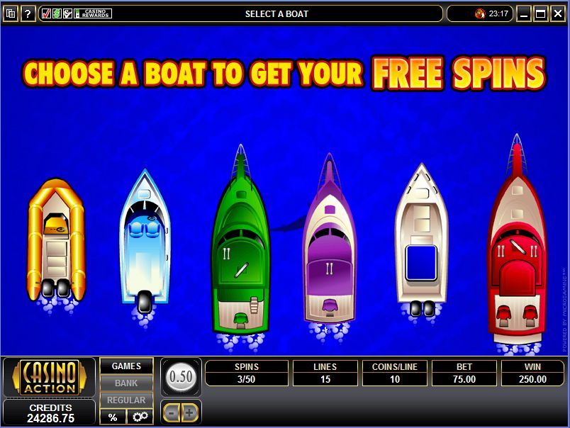 You will be taken to a new screen, where six fishing boats are shown from the top. You pick a boat, and you find out how many spins for free you get. Up to 7 free spins can be won, with the multipliers being much more impressive, at 6x.