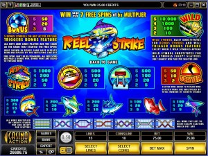 Reel Strike is themed around ocean fishing, with most of the symbols being various types of oceanic fish. This is not a game about industrial fishing, instead being about the amateurs that are using a rod to bring onboard the boat huge fish. Microgaming is the developer behind this slot machine. I haven’t seen this particular theme approached before, so it’s a plus that it has this particular design.