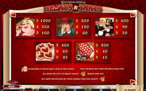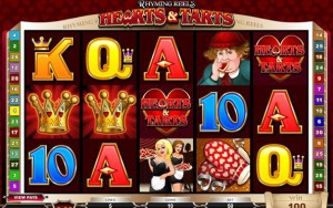 The games from the Rhyming Reels series include this title, called Hearts & Tarts. The theme includes the Queen of Hearts, heart shaped tarts and so on. The series is based on nursery rhymes for the most part, each title being inspired by a different one. It’s an attractive slot machine, with cartoon style symbols and which uses a lot of red, without becoming overwhelming. It’s a game that was designed by Microgaming’s developers.