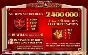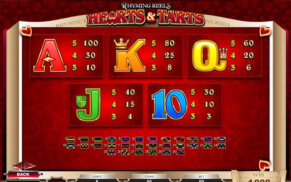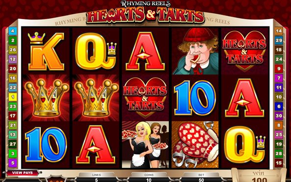 This Rhyming Reels Hearts Tarts slot is offered by all online casinos with Microgaming software, playable either in practice or in real money mode.