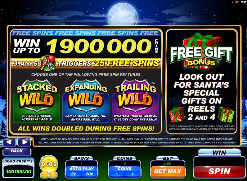 It’s not your typical Santa themed slot, but that’s a plus in its case, since it offers you cool graphics and a lot of excellent features. The prizes are not as great, but expect to get paid rather often.