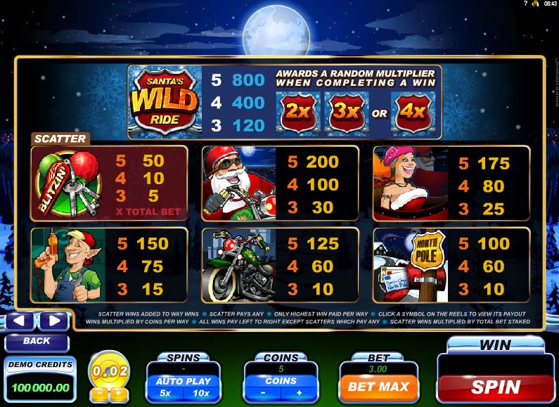 The Santa’s Wild Ride slot machine is offered through the Microgaming platform, so if you want to play it for real or just to practice, look out for casinos that use it.