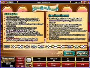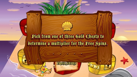 You only need two scattered Treasure Chests to be present, but they have to be on certain reels, the 1st and the 5th. The bonus game which follows puts a tropical island with six treasure chests in front of you, three red and three gold colored.