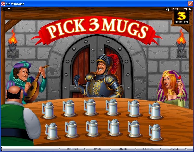 You are taken to a new screen, where 12 mugs of beer are on a table. You are asked to choose 3 of those mugs, each one offering you a random prize.