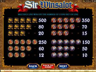 The Sir Winsalot slot machine is offered through the Microgaming platform, so if you want to play it for real or just to practice, look out for casinos that use it.
