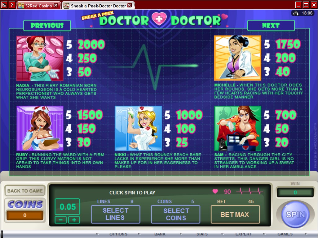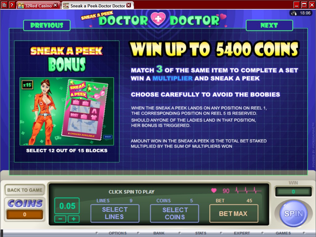 You will find Sneak a Peek – Doctor Doctor at any online casino which chooses to use software from Microgaming, playable either for free or for real money.