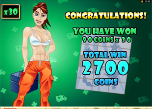 You are taken to a new screen, where you see the lady in question and a scratch card next to her, with 15 blocks that need to be scratched off. Up to 12 blocks host good symbols, while the last 3 have Boobie Logos which will end the feature. Once you manage to match three identical items, you get a sneak peek at the lady as she strips one item of clothing, plus you get a prize as well.