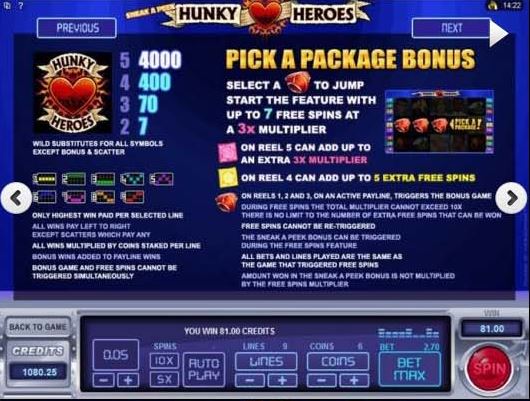 The Hunky Heroes slot machine is offered through the Microgaming platform, so if you want to play it for real or just to practice, look out for casinos that use it.