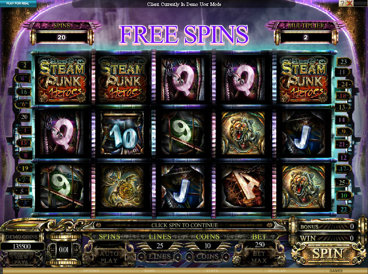 The Steam Punk Heroes slot machine is offered through the Microgaming platform, so if you want to play it for real or just to practice, look out for casinos that use it.