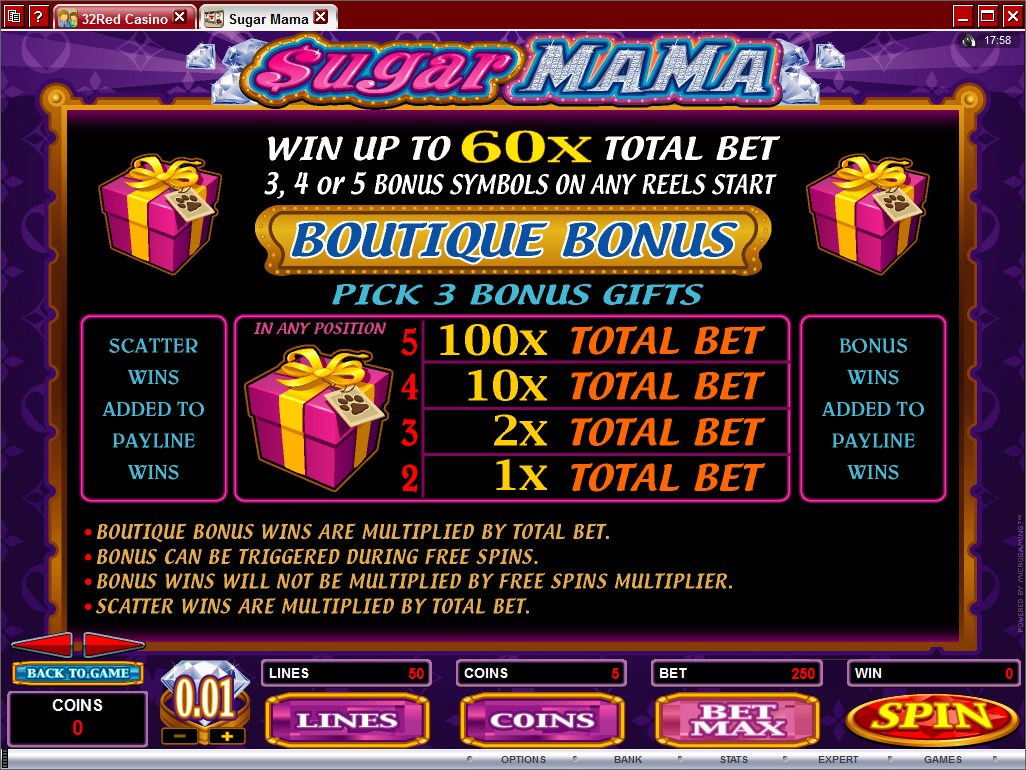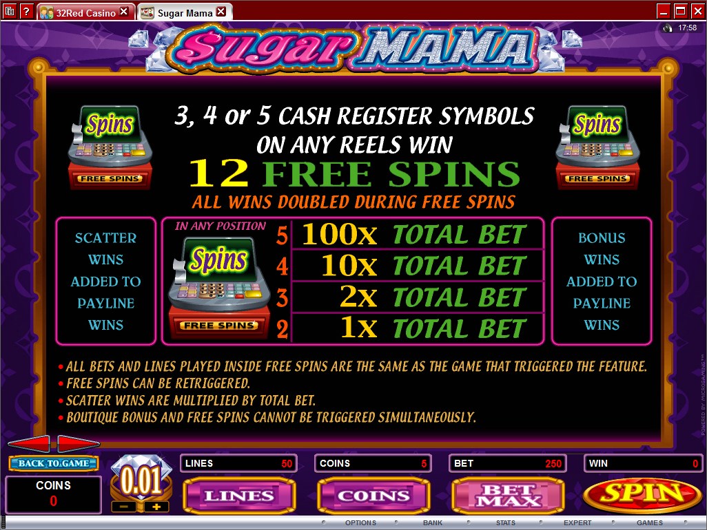 You will find Sugar Mama at any online casino which chooses to use software from Microgaming, playable either for free or for real money.