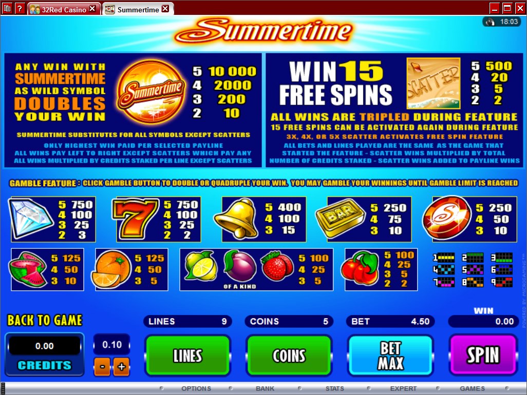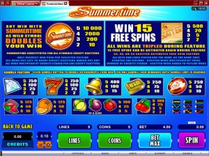 This Summertime slot is offered by all online casinos with Microgaming software, playable either in practice or in real money mode.