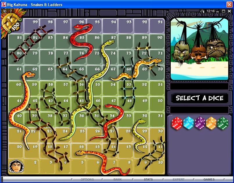 The Snake scatter appears on these three reels: 1, 3 and 5. Getting the Snake on all three reels will signal the start of a bonus game, called Snakes & Ladders. You have to retrieve the mask of Big Kahuna and you do this with the help of dice rolls, which tell you how much you will advance on the board.