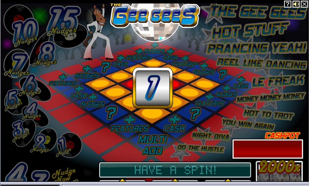 The bonus games include The Gee Gees, Hot Stuff, Prancing Yeah, Reel Like Dancing, Le Freak, Money Money Money, Hot to Trot, You Win Again, Night Diva and Do The Hustle.