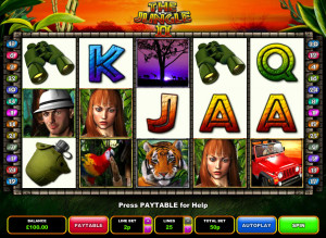 The-Jungle-IIThe action in The Jungle II focuses on the usual jungle design that quite a few other slots have chosen. It has a jungle like environment surrounding the game area, it has things like jeeps, tigers and explorers among its symbols, with the design going with a certain 3D quality when it comes to the images with the adventurers in them. The game is offered on the Microgaming platform.