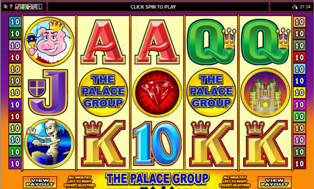The Palace Group appears to be a game that is themed around a casino, at least based on the name, as the actual design puts the action at a pig king’s court, involving mummies, treasure chests and red diamonds, among other things. It’s an older design style, but one that nonetheless is a lot of fun to watch. Add the features that are offered in this slot machine which you will find at Microgaming casinos, and you get a pretty decent title.