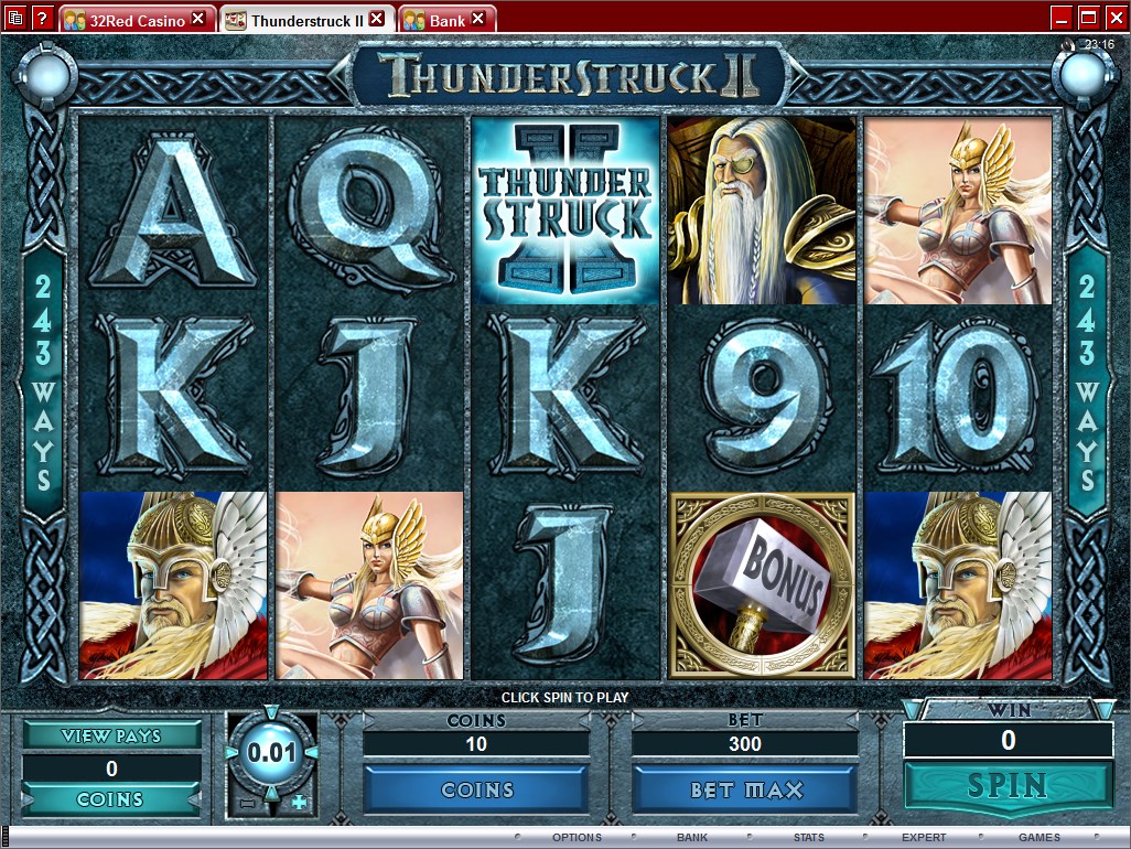 Thunderstruck II is a Microgaming slot machine and the second title in a series dedicated to Thor and his hammer. The Norse theme has been better approached in this title I think, but the design is still not quite to the level where I wanted to see it. Still, its features are much more interesting and there is more variety there as well. On top of that, the ways to win system was preferred for this title, and it tends to make things a lot more fun. It’s not the only Thor themed game available out there, but it does do a pretty good job at representing him and the other gods of the Vikings.