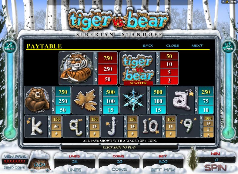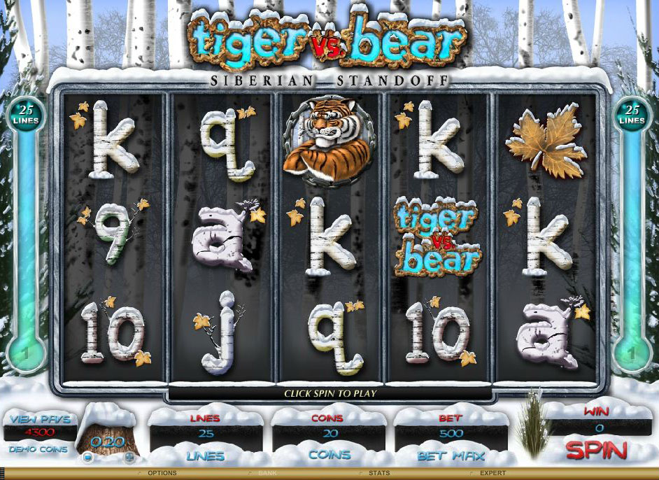 This Tiger vs. Bear slot is offered by all online casinos with Microgaming software, playable either in practice or in real money mode.