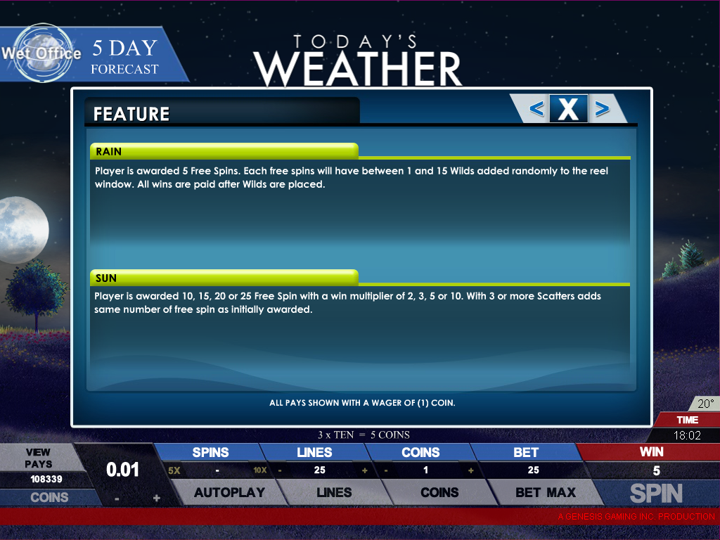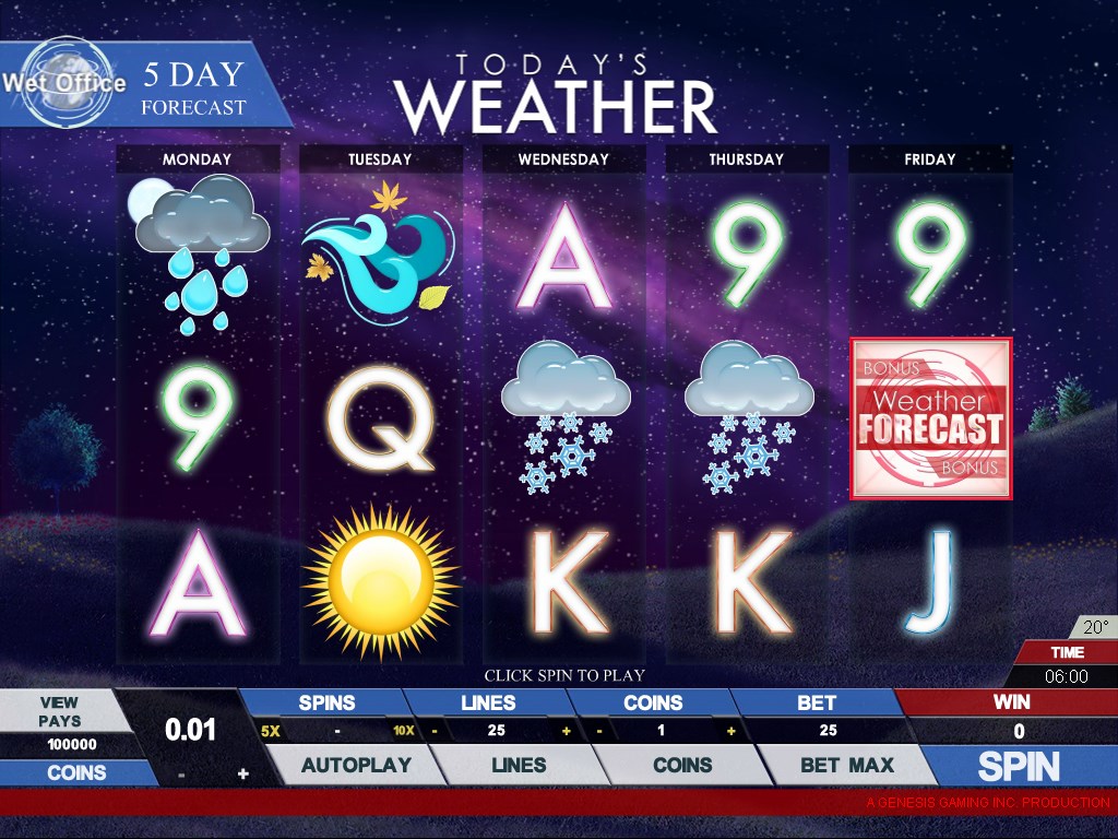 This Todays Weather slot is offered by all online casinos with Microgaming software, playable either in practice or in real money mode.