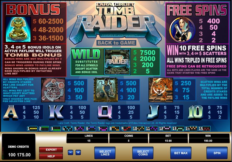 You will find Tomb Raider at any online casino which chooses to use software from Microgaming, playable either for free or for real money.