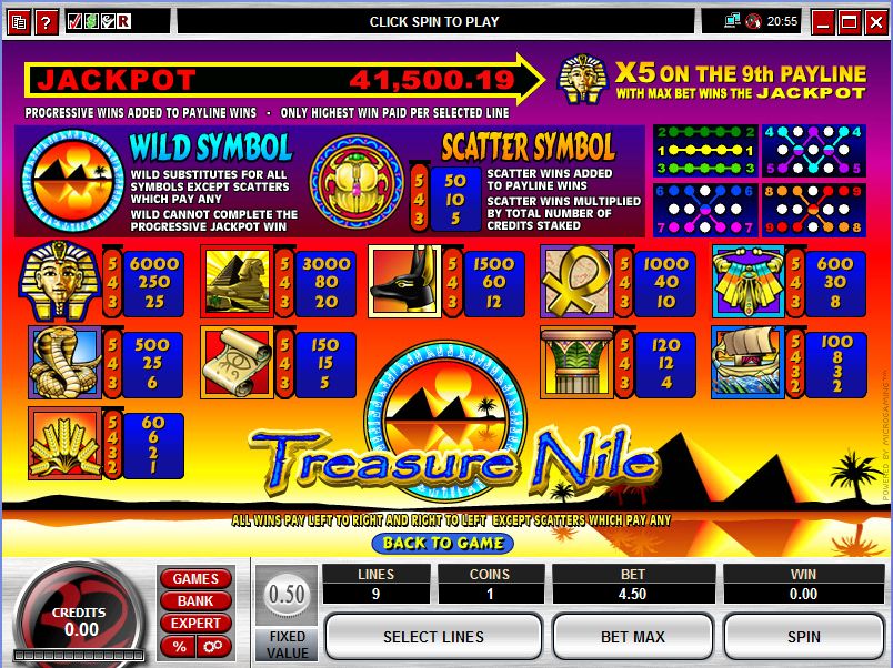Treasure Nile 5-Reel can be found at any Microgaming casino, where you get a chance to play it for real money or in free mode.