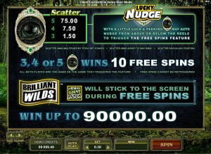 The game gives you a second chance of sorts, to trigger free spins. It will nudge unto the reels scatter symbols which are just above or below one of the reels, if this brings you the free spins.