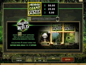 Among the symbols used in Giant Panda there are the scatters and the wilds. The scatters trigger free spins with sticky wilds. The wilds can be collected and turned into wild reels.