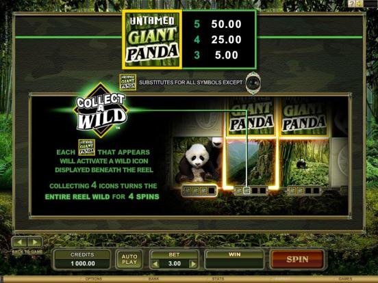 The Untamed – Giant Panda slot machine is offered through the Microgaming platform, so if you want to play it for real or just to practice, look out for casinos that use it.