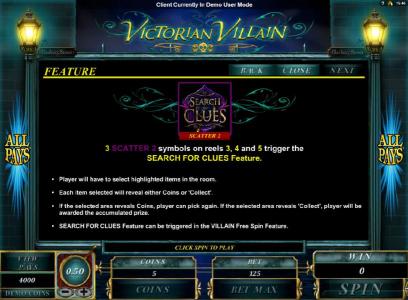 Search for Clues Bonus Game