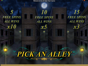 You choose one of the three alleys on the new screen, and you receive 5 spins with 10x multipliers, 10 spins with 5x multipliers, or 16 spins with 3x multipliers. The choice is left up to you. You can retrigger the feature, if you’re lucky again and get the three scatters.
