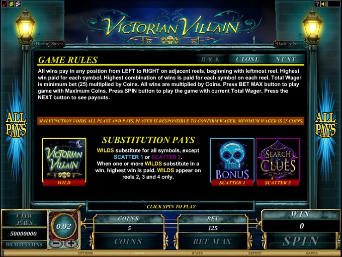 You will find Victorian Villain at any online casino which chooses to use software from Microgaming, playable either for free or for real money.