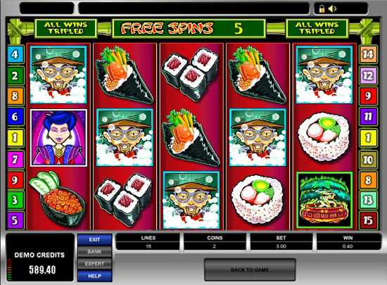 You’re getting a fairly typical Japanese inspired slot machine, a pleasant game to play, but not something to be truly impressed with. You have various types of sushi foods among the symbols, a logo, Japanese characters and other things that are known to originate from this country. Overall, a decent choice for a fan of sushi.