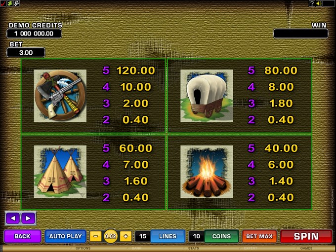 The Western Frontier slot machine is offered through the Microgaming platform, so if you want to play it for real or just to practice, look out for casinos that use it.