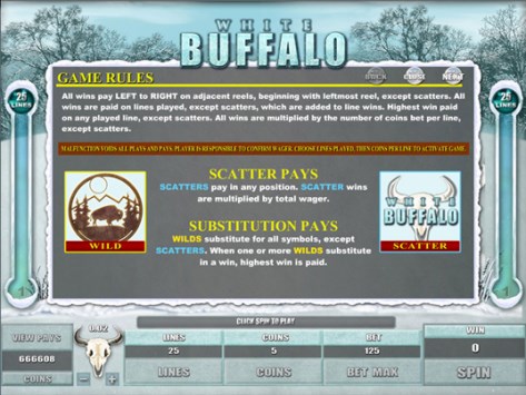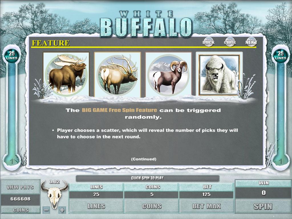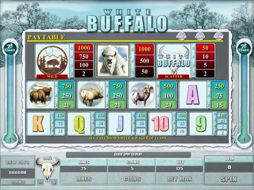 You will discover in White Buffalo a game which relies on wild symbols, on scatters and a bonus feature which decides the number of free spins that you can get.