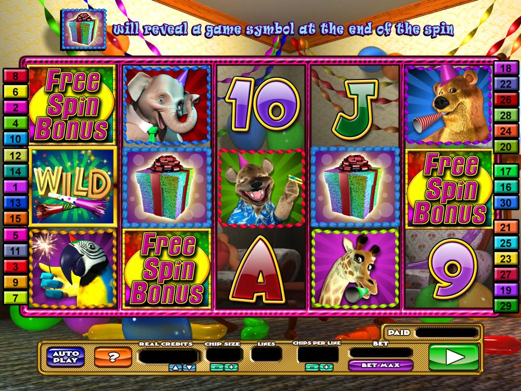 Microgaming’s Wild Birthday Blast is an unusually themed slot, where you get all sorts of circus animals that are attending a birthday party. They’re holding noise makers, they have party hats on, and they seem to be having a great time together. You have elephants, bears, giraffes, parrots and other types of wild animals, the background image placing the action in a regular room, with balloons on the floor and decorations on the walls.