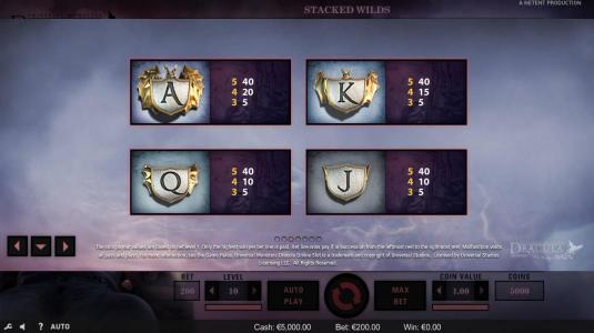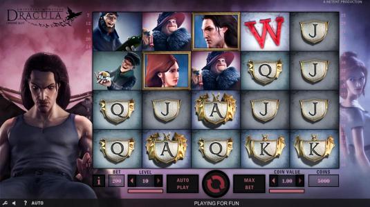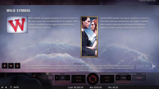 A symbol with a W Logo is chosen by the game to act as the substitute, the only one which can do this in this case. It is used on the reels 2, 3 and 4, and during the base game spins only. These wilds can substitute for all other symbols in Dracula, no exceptions.