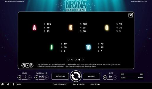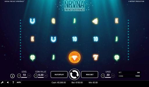 NRVNA-The-NXT-XperienceThe slot’s design is almost as unusual as the title. Featuring a modern design, it nonetheless chooses symbols which have symbols in them that are either poker cards, they’re luck related or classics. The action seems to be taking place somewhere in the depths of the ocean, the dark blue water getting only a bit of light from the surface. NRVNA is a game which is offered by Net Entertainment.