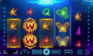 Sparks is a lovely game which Net Entertainment offers. It’s a slot machine with a theme that seems to revolve around fireflies, sparks of fire and pretty much all the design is based on that kind of energy that looks alive. It uses various shapes made out of light and of different colors, there are poker cards which seem to be shaped out of colored fire, and overall it appears to be a game that you will enjoy, despite the very simple construction.