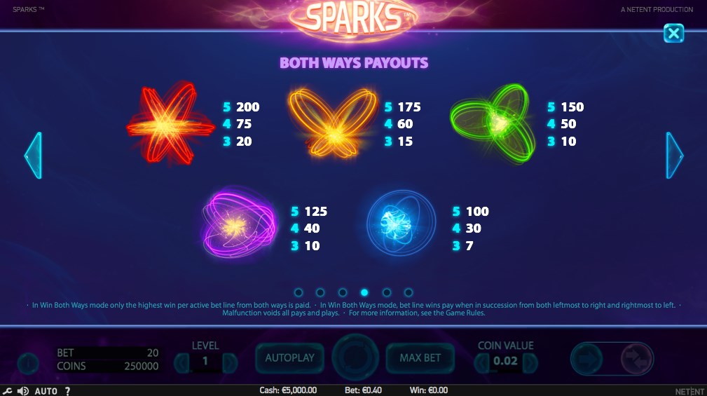 The Sparks slot machine is offered through the Net Entertainment platform, so if you want to play it for real or just to practice, look out for casinos that use it.