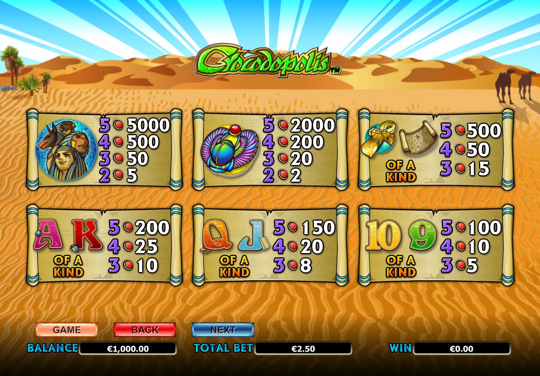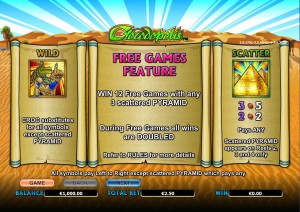 While the scattered Pyramid can only appear on the 2nd, 3rd and 4th reels, from those positions it can do a lot of good. First of all, it awards up to 5x the bet in payouts, the requirement being that either 2 or 3 symbols of this type are present.