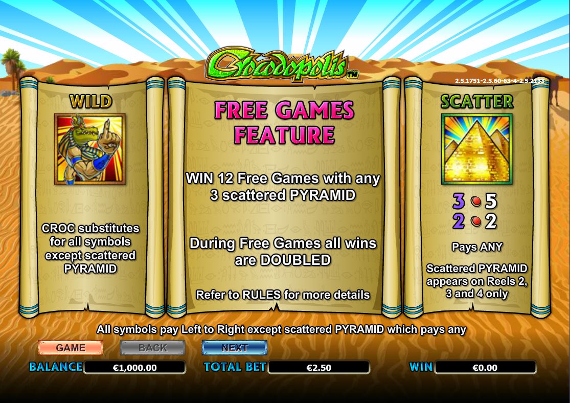 You will find Crocodopolis at any online casino which chooses to use software from NextGen, playable either for free or for real money.
