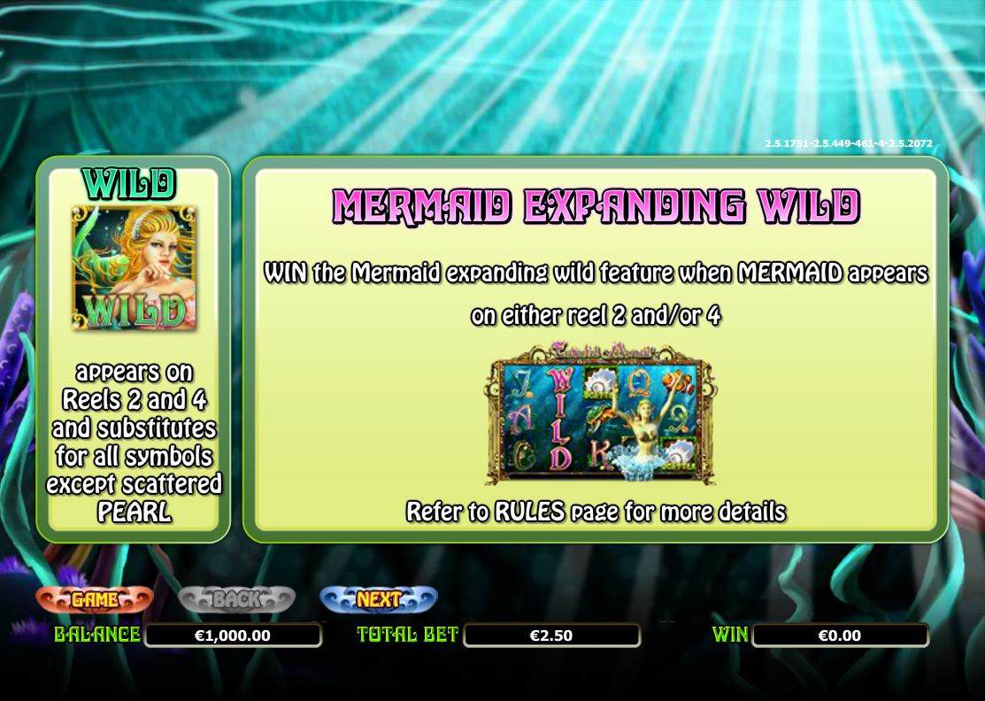 The Mermaid is visible in only one symbol in this game, and it’s only going to appear on reels 2 and 4. As a wild, it obviously can substitute for other symbols, and it does this for most of them, the Pearl scatter being the only exception. Even though only two reels get the wild, it has an advantage here, its ability to expand and take over the entire reel. Prizes are not awarded directly by the Mermaid, as there aren’t enough of them to form a combo.