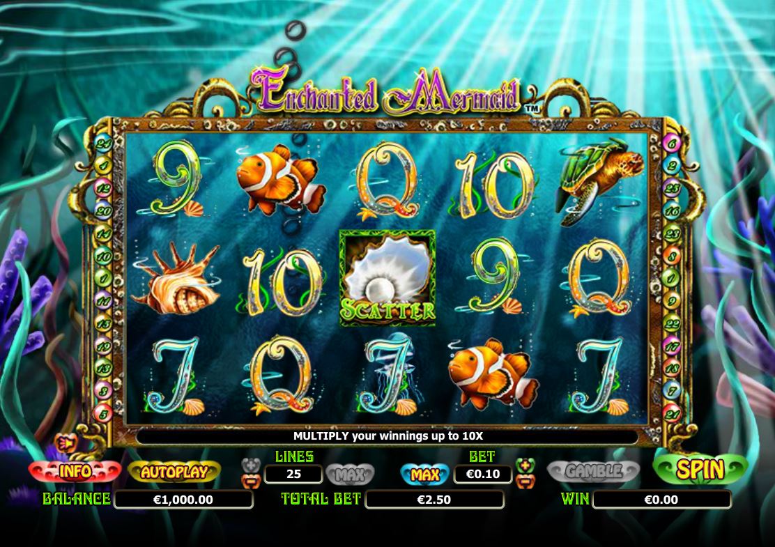 You will get 25 lines in Enchanted Mermaid, the game having 5 reels total. There are scatter symbols among its features, plus wilds that expand and free spins which have huge multipliers. You can win $10,000 if you get the biggest prize available.