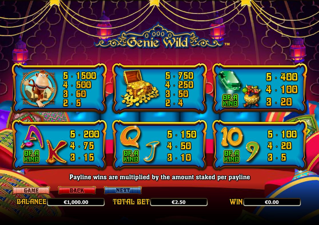 The Genie Wild slot machine is offered through the NextGen platform, so if you want to play it for real or just to practice, look out for casinos that use it.