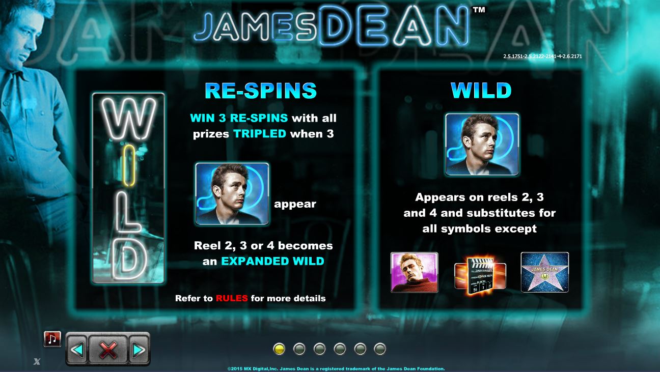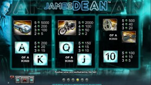 The game’s features are unusual enough, as they should be for a James Dean themed title, which isn’t just another guy in a crowd. You will find wild symbols in it, expanded wilds, re-spins, multipliers, free games, scatter symbols and bonus games. As you can see, you get a little bit of everything from this slot.