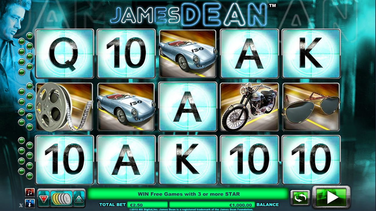 25 bet lines are present on James Dean’s 5 reels. You can win up to $12,500 from its best paying symbols, but you will also take advantage of interesting features, including here the re-spins, the wilds, free games, legend spins with big multipliers and scatters.