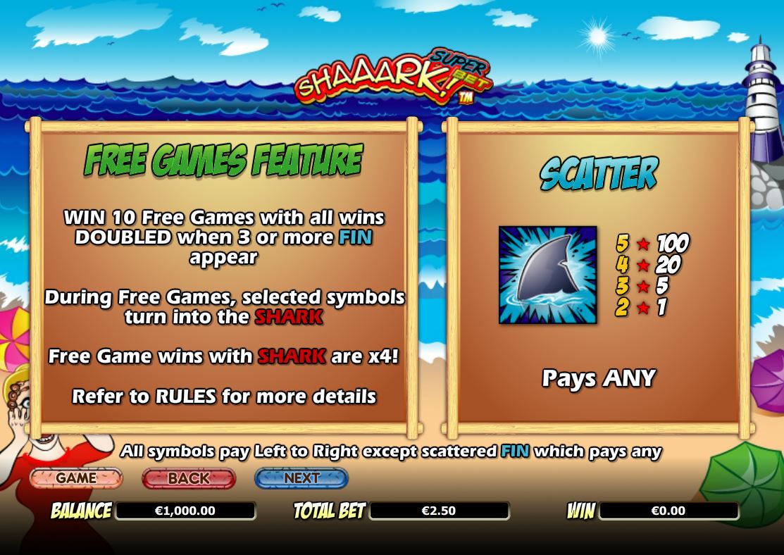 Since there are 5,000 coins promised by the paytable, you can expect a $10,000 jackpot from Shaaark.