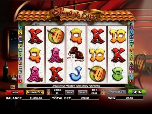 The design is one of the best things about this slot. It’s not the only Spanish dancer themed slot machine, but it’s one of my favorites because of the attention to detail. Even though poker cards are present, they are shaped in a fun way, looking a bit like dancers themselves. The rest of the symbols look even better, being music instruments or flowers, dancers and hand fans.